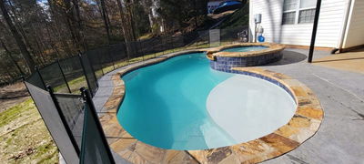Water features turn a quiet pool into an active and engaging environment. You can install bubblers on a tanning ledge for a playful effect. Sheer descents create a thin, glass-like sheet of water that falls into the pool. These features also help aerate the water, keeping it cooler during the hot Georgia summers. They provide both visual beauty and a relaxing soundscape.